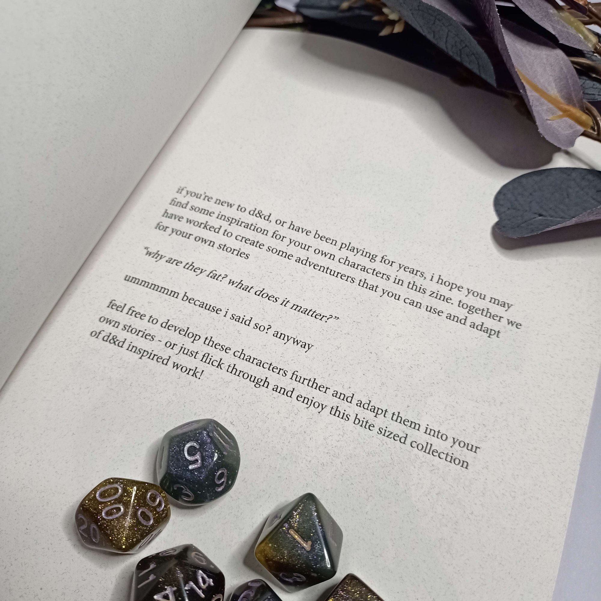 In this collaboration between Zoe Joan and Cloakling Cass, the two create plus-size characters to be used for D&D and other similar games. This zine aims to force more body diversity into the world, and to normalize fat people being badass and magical characters too!